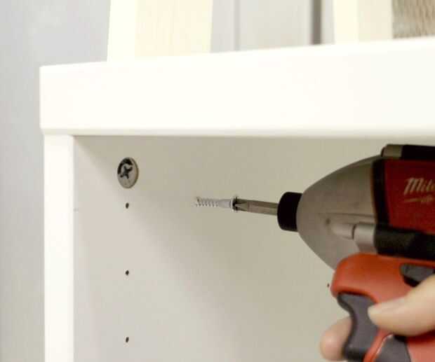 Repetir este proceso desde el interior del gabinete y poner una línea suave con lápiz dónde crees que sería mejor. (Decidí alinear mi tornillo superior con el orificio superior preexistente, como un marcador fácil)