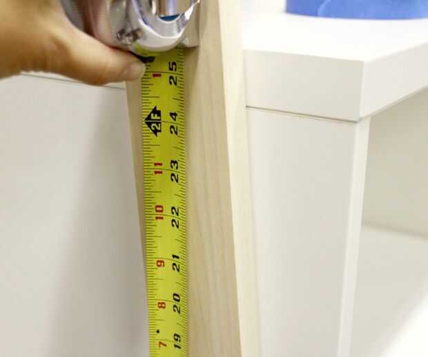 Mide el frontal en posición vertical y tener una idea de que sería un buen lugar para poner el tornillo superior. (Yo escogí alrededor de 23").