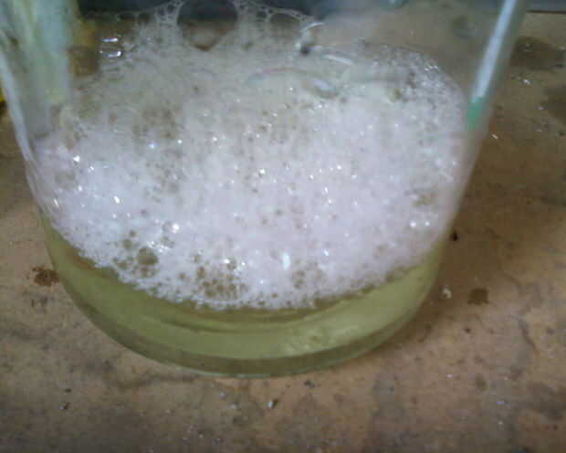 Es básicamente un tarro de cristal con agua y plato detergente en la parte inferior y una pipa con el azúcar en la punta.