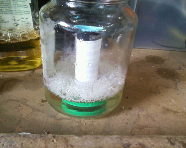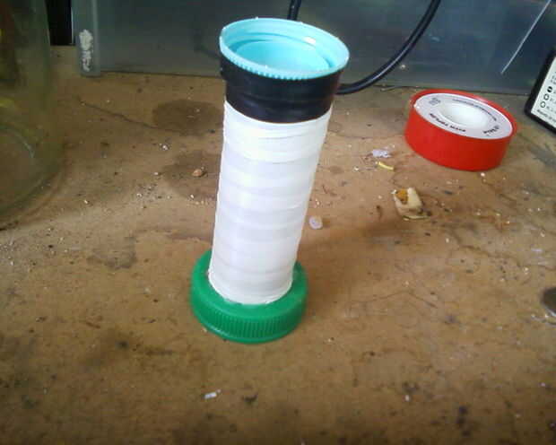 Para empezar por el cebo. Haz una tapa de plástico y hacer un agujero en él, la otra tapa en la punta del tubo con cinta aislante, el tubo con el mundo de la línea slippest material, teflón, un pase del tiro de la pipa del agujero. Entonces agua de mezcla y detergente del plato y ponerlo en la parte inferior de la botella. Tiene que ser suficiente para cubrir la tapa hacia abajo, pero como menos posible, alrededor de 1 cm por encima de la tapa, pone el cebo en él sin azúcar y entierro la botella cerca del hormiguero y finalmente poner el azúcar en la tapa.