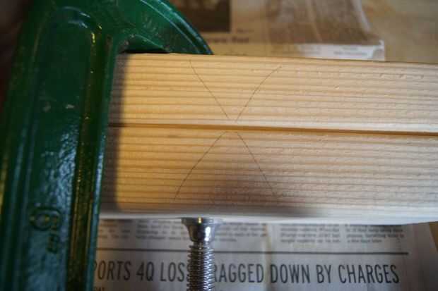 Paso n º 2 Otra vez, "seco-abrazadera" la base antes de pegar. Antes de retirar las abrazaderas, marque con una alineación, "X", para evitar que accidentalmente montar incorrectamente.
