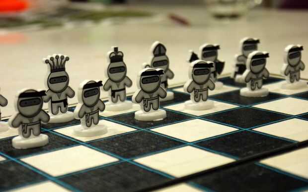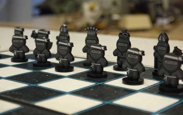 Después de que el pegamento ha fijado su nuevo conjunto de ajedrez Ninja está terminado y listo para una partida de ajedrez. Bien hecho.