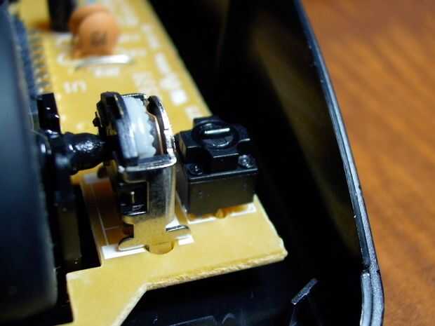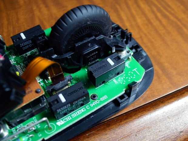 Al llegar dentro, coloque los interruptores de ratón. Usted debe ver algunas cajas rectangulares como en la figura 3. Si tienes la Plaza cambia como en el cuadro 4, estás de suerte. Hay una manera de ellas que encontré tranquilidad. (Utilizan un disco fino, metal cóncavo que tirones a ser convexo cuando presiona. Poner cualquier cosa ahí calmar hace perder toda la funcionalidad.)