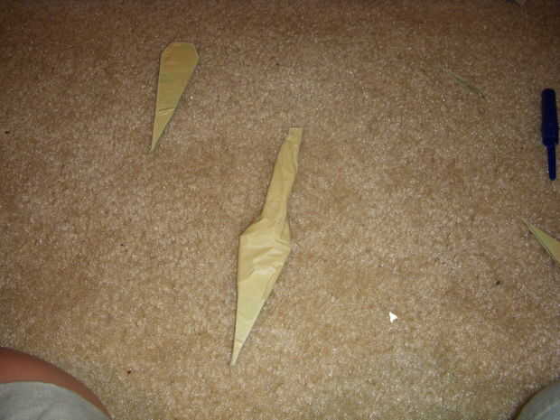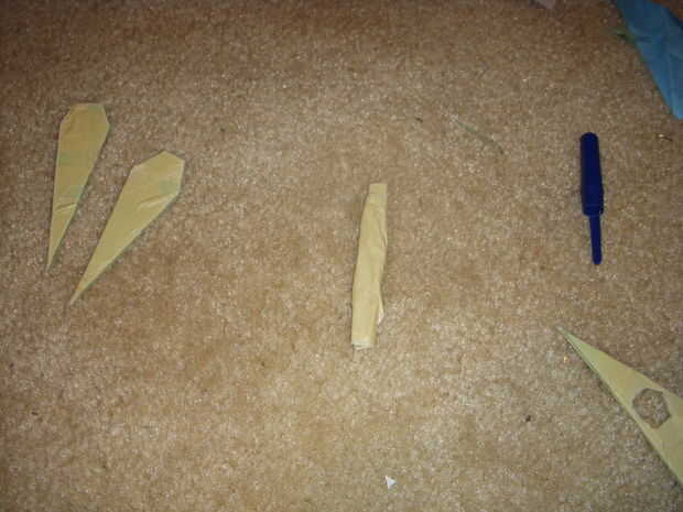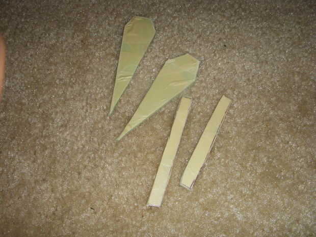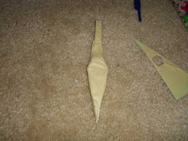 1: tapa CD tape wit y dibujar el contorno. 2: las líneas de corte olong. 3: los dos trozos largos de cinta juntos. 4: sanwich largo piezas juntas entre las piezas del triángulo. 5: cinta junto