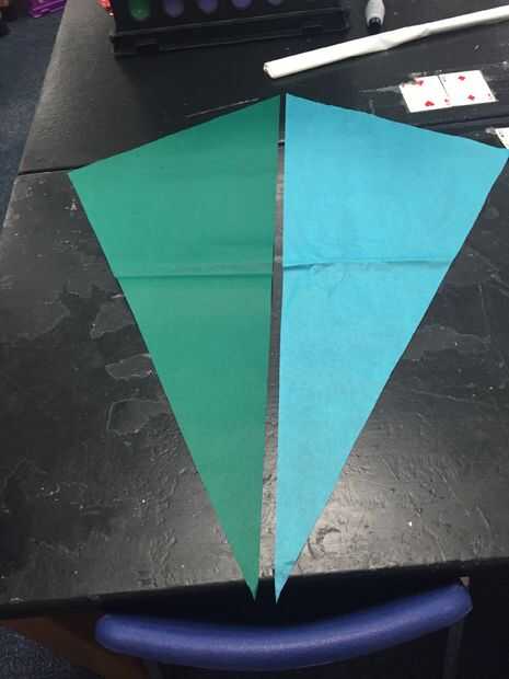 La primera foto es lo debería haber tenido después del corte en las líneas que ha dibujado antes. Repita el procedimiento en una pieza diferente del papel de tejido o vela.