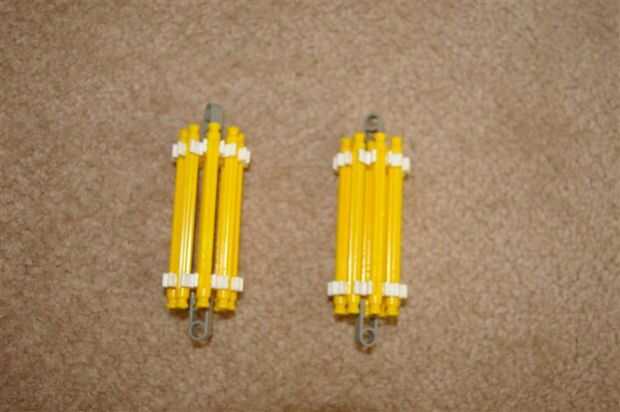 Deslizar las dos cañas por el centro de las manijas de amarillo y asegúrelo con una abrazadera gris. Como se muestra a continuación.