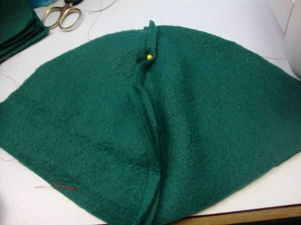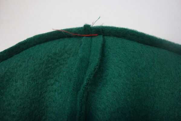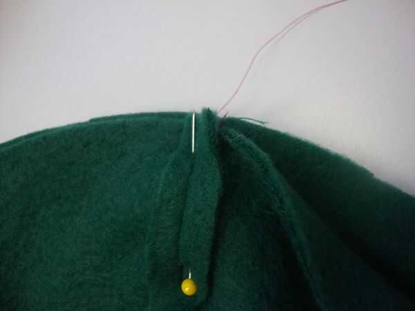 A continuación, pin las dos piezas juntos, en parte, para que la costura en la parte superior coincida con el otro. Coser a lo largo de la parte superior. (Como un arco iris. Véase el cuadro 4).