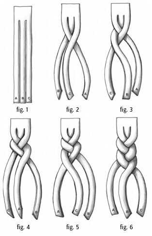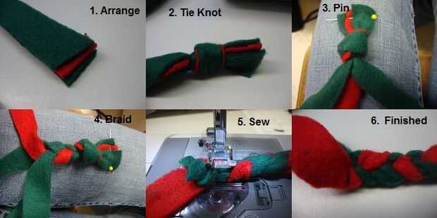 Tomar las piezas de la trenza y arreglarlos de modo que la una sola pieza rojo entre los verdes. Pin el extremo anudado en algún lugar. Quiero a prender a mis jeans, pero donde fácilmente puede trenza y tire de él y quedará obras. =) La trenza como pueda. Luego, coser el final de la trenza para que no esté deshecha.