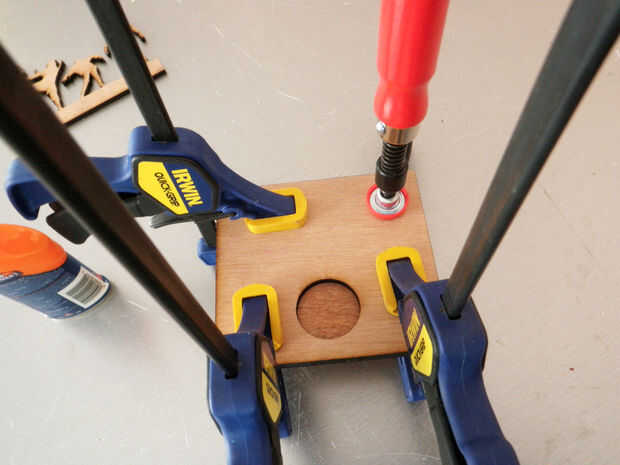 Uniformemente de emparedado esa pieza junto con la pieza en forma de U y abrazadera de ellos hasta que sequen (aproximadamente 30 minutos).