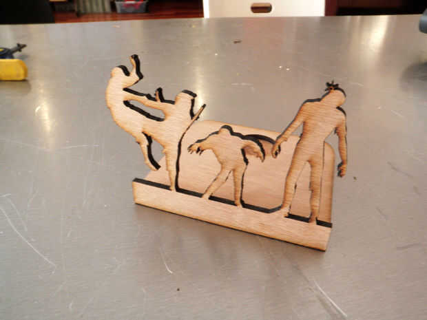 Quite las abrazaderas y aplica el pegamento uniformemente a lo largo el borde plano corto del nuevo compuesto en forma de U pedazo (esto es el borde de enfrente de la curva). Esta pinza en ángulo recto con la abertura del "Ninja vs zombies".