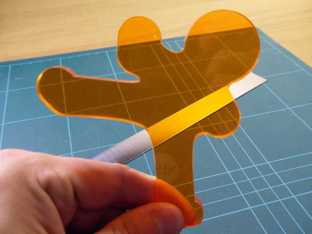 Láser corte Mis plantillas de acrílico naranja transparente de 5mm. Esto no es necesario y las plantillas en papel de impresión, pegado a un MDF o contrachapado de madera y corte a su alrededor con una sierra de marquetería más bastaría.