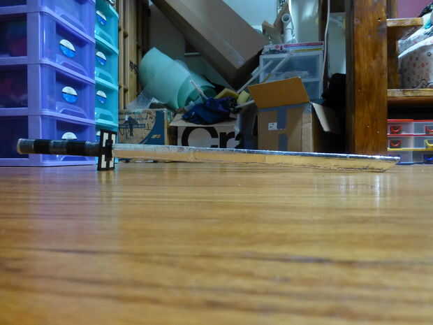 2) una varilla plana de madera. El deluente la barra, el más débil, el más gruesa, cuanto más gruesa la hoja. Usé uno que era probablemente cerca de cinco milímetros de grosor y una mitad de una pulgada de ancho.