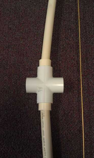 2. Inserte cada uno 1/2 CPVC 18" largo del tubo de los acoplamientos de CPVC 1/2 montado anteriormente"