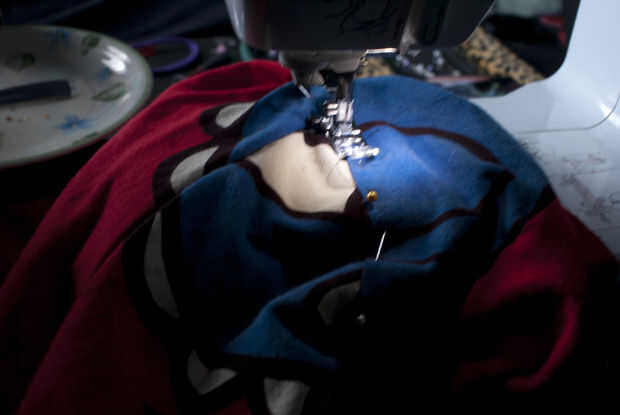 en vez de comprar una media genérica, cortar una camiseta de manga larga suave, muy querida y hacer mi propio custom media. con algo hecho a mano, no se necesita mucho para demostrar que te importa mucho. Esto es sólo una camisa vieja que de lo contr
