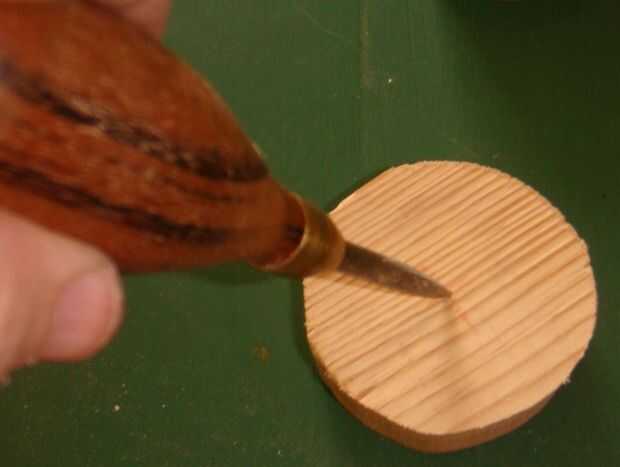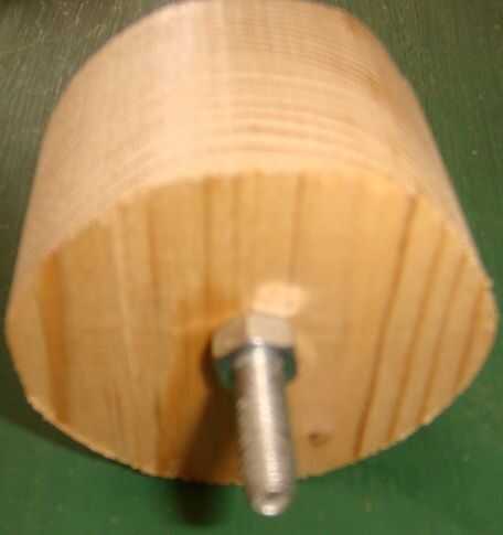 Para el mando, perfore un agujero de un ½" profundo, en un pequeño trozo de madera de 3/8" madera pasador 1 ½ - 2" de largo cubra el orificio con pegamento y empuje el pasador. Después de que el pegamento se seca puede montar esto en su taladro igual o sólo forma a mano alzada con la dremel. Cortar exceso espiga luego forma el botón retener unos ½" de espiga como una espiga en su mando. O puede utilizar una perilla pequeña tienda compró.
