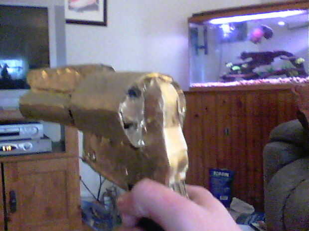 clip de dinero este se dobla como una pistola de goma. sólo una pequeña banda de goma lazo aunque la capa doblada y luego el gatillo pulg. Ponga el otro extremo en el gatillo, entonces usted está listo para cargar.poner una banda elástica en el brazo