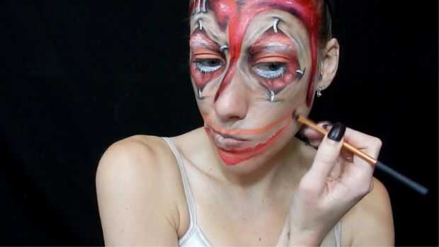 Cómo pintar la cara como el gato de Cheshire del videojuego Alice Madness Returns.Paso 1: base primer esbozo donde la boca se vaya, luego cubrir tu rostro en pintura gris dejando la sección de boca claro.Paso 2: piel para obtener la piel agregué manc