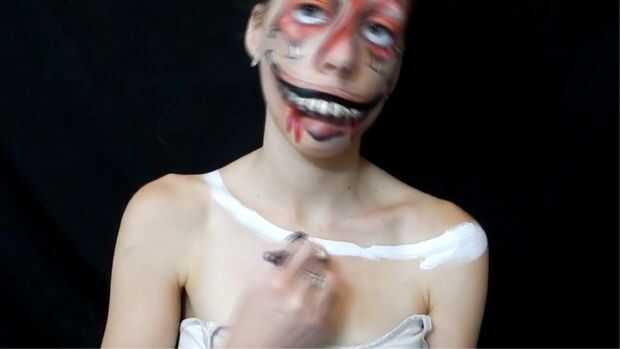 Cómo pintar la cara como el gato de Cheshire del videojuego Alice Madness Returns.Paso 1: base primer esbozo donde la boca se vaya, luego cubrir tu rostro en pintura gris dejando la sección de boca claro.Paso 2: piel para obtener la piel agregué manc
