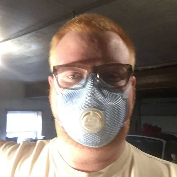 Seguridad primera GNome'eers como no puedo tener la lijadora de banda enganchada hasta mi aspiradora de taller para los siguientes pasos que llevo mi handy dandy mascarilla N95.