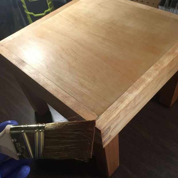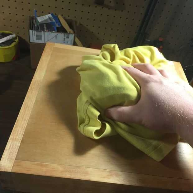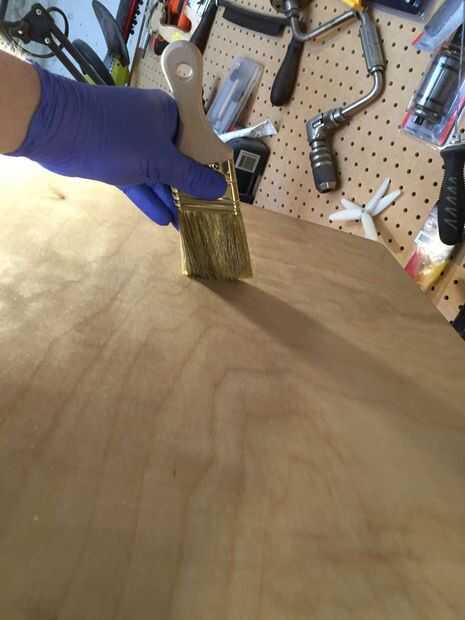 - Luego aplica una fina capa de mancha + poliuretano en uno y permite que seque durante la noche.