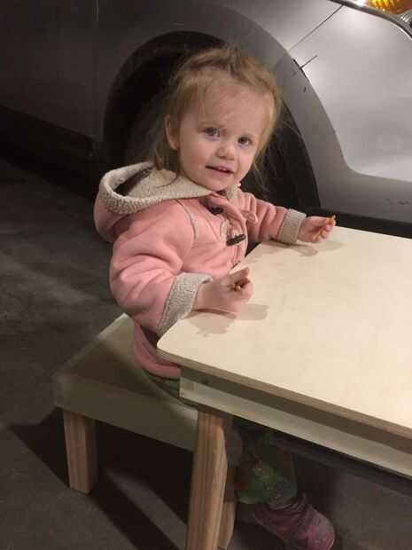 En este punto generalmente posteo una foto de mi pie sobre la mesa o taburete pero clase de sería un poco excesivo para el público. Así que le pedí Miss Abigail para probar un proyecto y estaba feliz de obligar y posan para una foto. Todavía estaba parado en el taburete y se sentó en la mesa para asegurarse de que no se derrumbaría. Sólo pensé que todos ustedes vieron lo suficiente de mi taza en el equipo de seguridad.