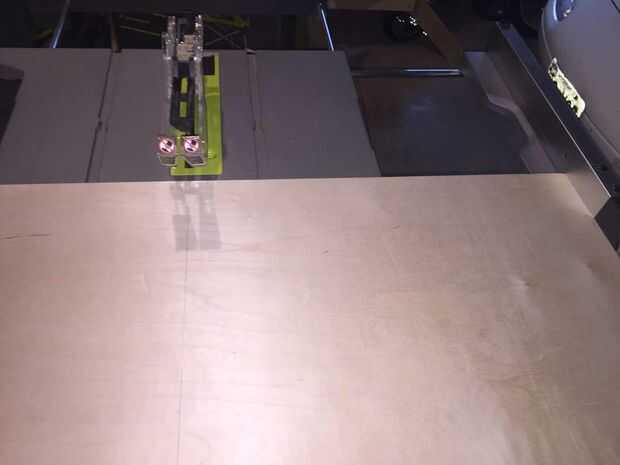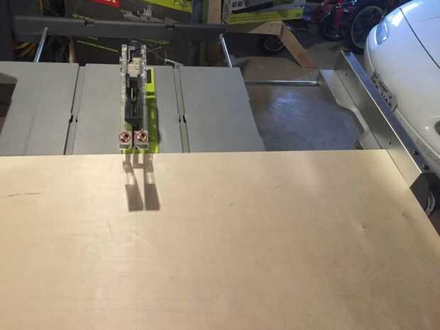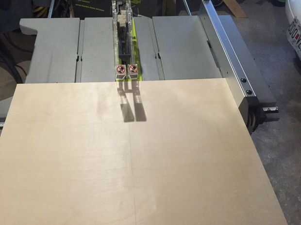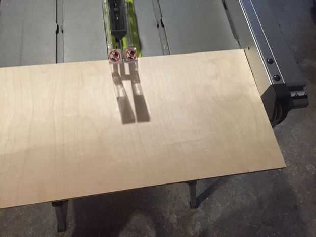 Comenzar con la pieza de contrachapado de abedul. Y la Sierra de mesa desenchufado.