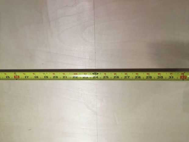 Configurar tu guía para que con el corte que tienes exactamente 24 pulgadas. Había verificado mi valla con una medida en la parte delantera de la hoja de la parte posterior de la hoja y el centro de la hoja. También marqué mi madera contrachapada con una línea en la marca de 24 pulgadas para asegurarse de que estaba recibiendo un corte recto. (llamada que me cauteloso pero finalmente consiguió una mesa vio después de todo el tiempo de intentar hacer una sierra circular corte it...pun la intención)