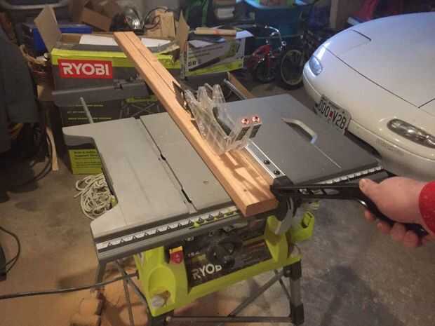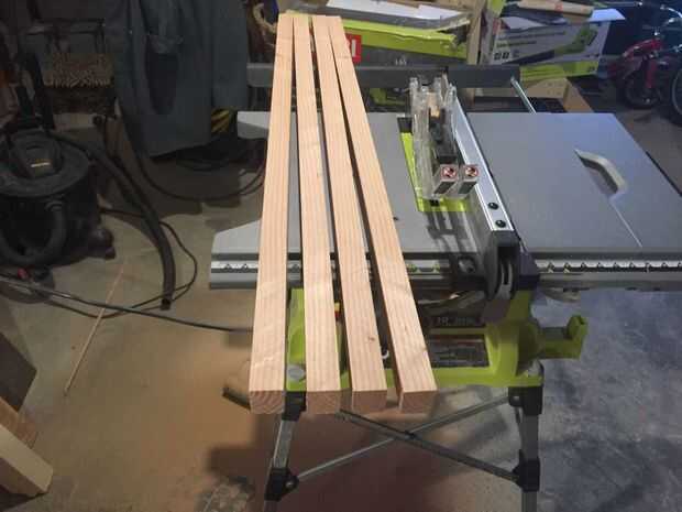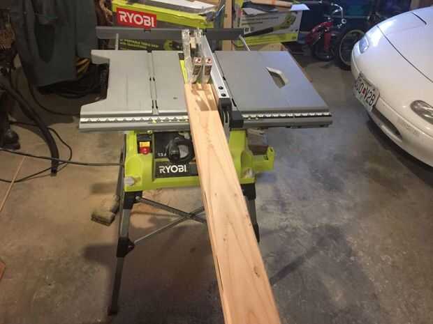 Ahora tengo 4 piezas de madera de 1 1/2 x 1 3/4 x 48 pulgadas 2 esquinas son agradables y nítidos y 2 se redondean más. Al cuadrado de la pierna acción puse mi guía de corte a 1 1/2 y funcionó el lado curvo aunque por lo que ahora tengo 4 piezas de 2 x 4 que ahora son 1 1/2 "x 1 1/2" x 48 "con nítidas esquinas y lados cuadrados.