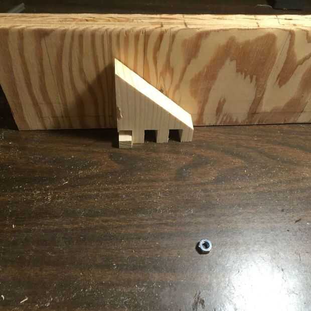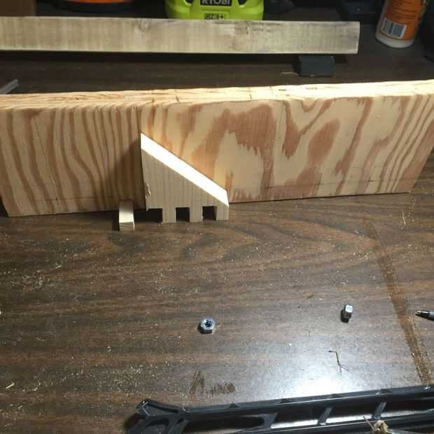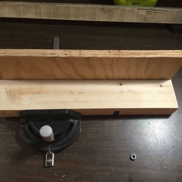 Al principio que pegué un 2 x 4 a una sección de madera contrachapada de 3/4" y cortar que los extremos al ras en un 90 con mi sierra de mesa.