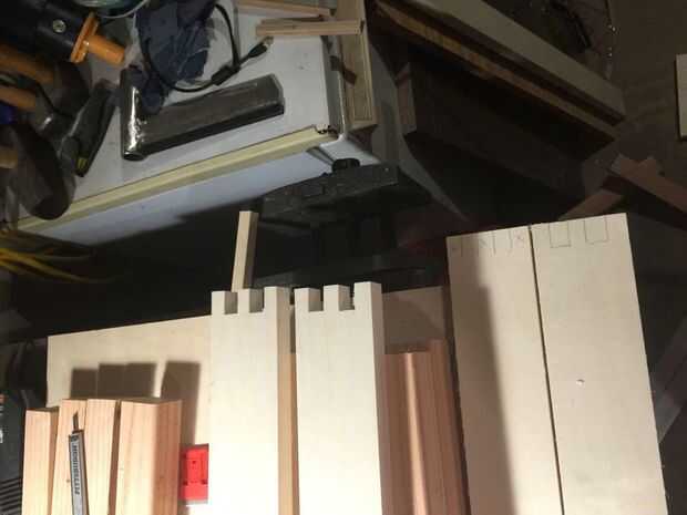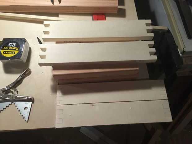 Yo configurar mi jig como se describe en el paso anterior y cortar 3 dedos en ambos extremos, de 2 -13 1/2 "y 2-24" longitud delantal. Se cortan los dedos acoplamiento en las otras piezas, obtuvieron en su mayoría de derecha y explicará cuando traigo más acabado y de relleno.