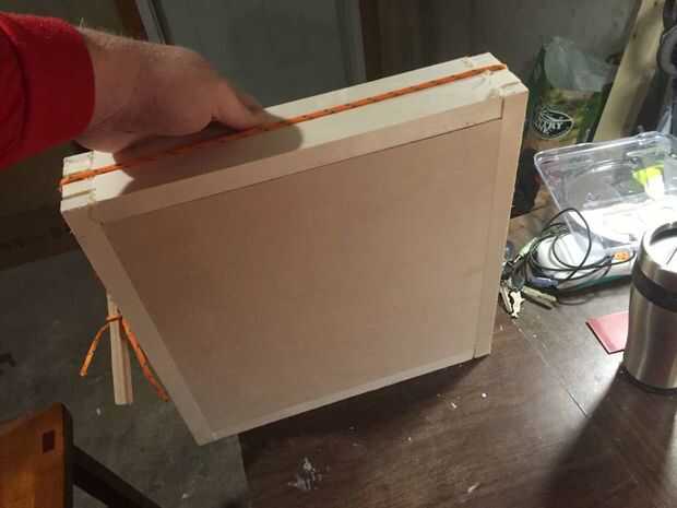 Entonces me torcí la espiga para aplicar tensión en el cordaje de tal modo de sujeción 4 esquinas alrededor de la parte superior como un espaciador. y usa una abrazadera de resorte de 3 pulgadas para evitar que el pasador de desenroscar.
