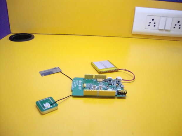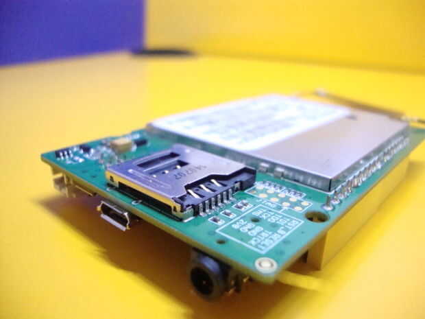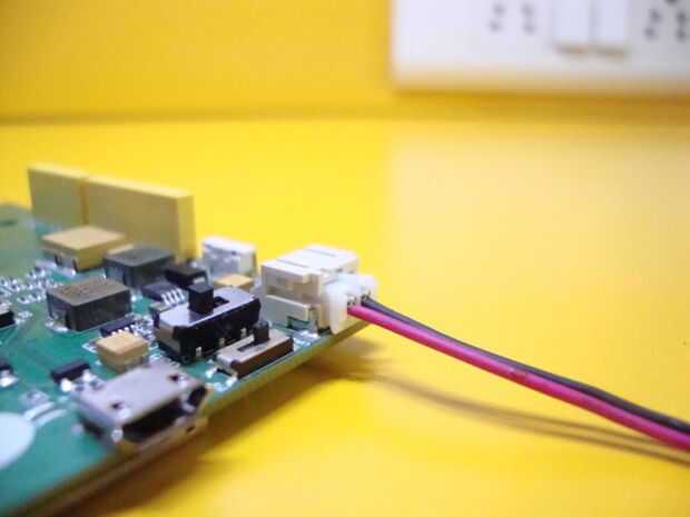 Siguiente paso es conectar la batería y la tarjeta SIM. Primero conecte la batería a la toma de color blanco en la esquina inferior izquierda del tablero. El ajuste del interruptor grande a la posición del palo, debería ver la luz por LED a bordo.