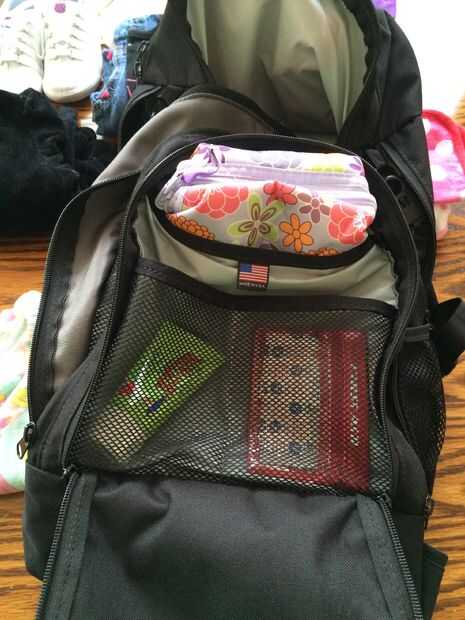 A continuación, los trapos. Tomé el envase de toallitas que vino con la bolsa hacia fuera y substituido por un paquete de tamaño completo nuevo, sin abrir. La mochila tiene una correa elástica de velcro ancho agradable que mantiene las toallitas en su lugar. Se puede acceder a través del gran panel de velcro en la parte inferior de la bolsa.