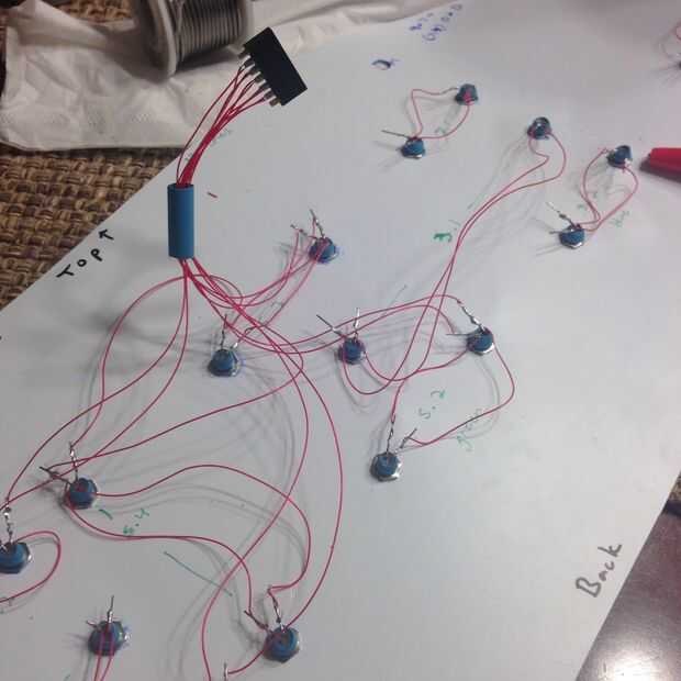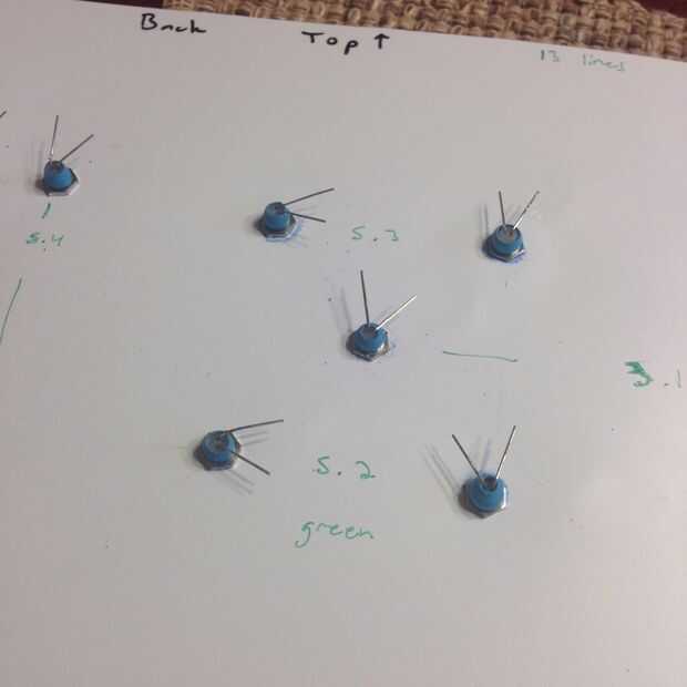 Tenga en cuenta en algún momento que desea establecer parcialmente hasta su Charlieplexor tener una idea cómo sus pernos deberá ser orientado. Etiqueta de las conexiones, conecte los pernos, luego usted podrá soldar directamente en los conectores.