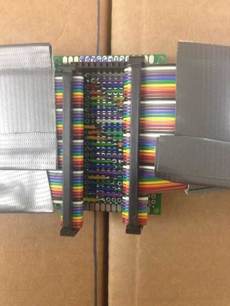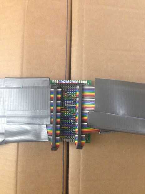 Así que aprendí a construir la cinta de las conexiones de cable. Sólo rompí los 3 primeros... Al final usé un vicio y un respaldo cabecera rota para perforar la cinta con el encabezado. Luego vuelva a montar con un conector intacto detrás y barra del alivio de tensión. Supongo que hay por ahí un arrugador de cable de cinta fantasía. Intentando perforar una cinta 50 conector con un par de pinzas apenas vuelva a encajar el conector (barato) en pedazos cortos.