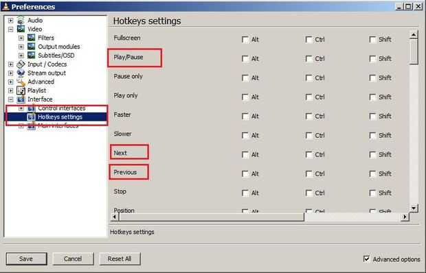 A continuación, abra las preferencias de combinación de teclas y cambiar las teclas de acceso rápido a los números en el teclado que desea utilizar con el reproductor de medios VLC. Inicialmente estaba no se puede establecer las teclas de números, pero después de actualizar a la última versión del VLC player, pudo hacerlo.