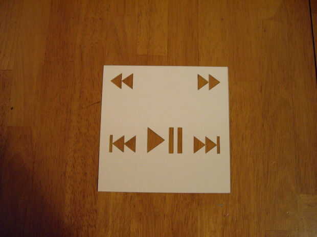 Entonces utilicé pegamento de foto para fijar la plantilla a la parte superior y cinta para enmascarar los lados (no omitir la foto pegamento Si pulveriza los símbolos-si no acabará con los bordes borrosos de los símbolos).