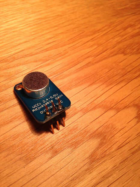 Compré a este chico poco dulce. El micrófono Electret de adafruit es el micrófono en el sólido. Tengo una imagen de stock desde el sitio de Adafruit y mi imagen después de soldados juntos. Aquí está el enlace para comprar...