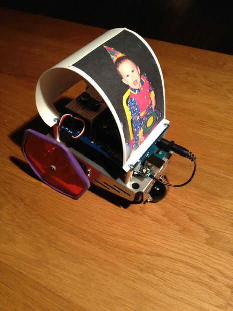 Más patético intento de personalizar el Bot de niño. Yo quería en un momento dado hacer una cubierta peluda para este bot. Entonces había pensado en comprar una muñeca y simplemente tener la cabeza que se le atribuye. Entonces para efectos de facilidad y comodidad me conformé en hacer una cubierta de estireno poly y cortando para crear una shell de transporte. Más tarde os adjunto una foto de bebé Miley Cyrus, porque quién quisiera gritarle a bebé Miley Cyrus!!??
