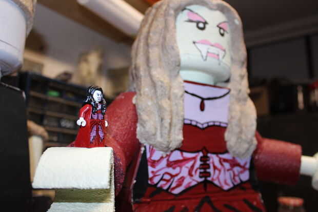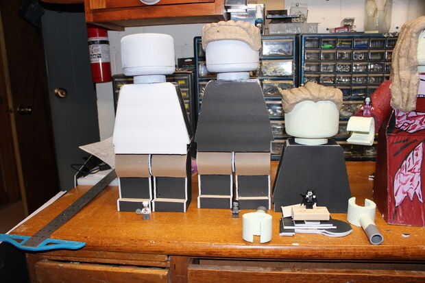 Los hombres de Lego fueron elaborados fuera del tablero de la espuma, tallarines de la piscina, algunas estructuras de madera, y 6 pulgadas de espuma tallada para la cabeza. Arcilla de papel maché fue hecho y utilizado para crear el cabello y otros elementos. Probablemente necesite un instructable sobre aquellos demasiado pero hay mejor construyen Lego mini higos ahí :)