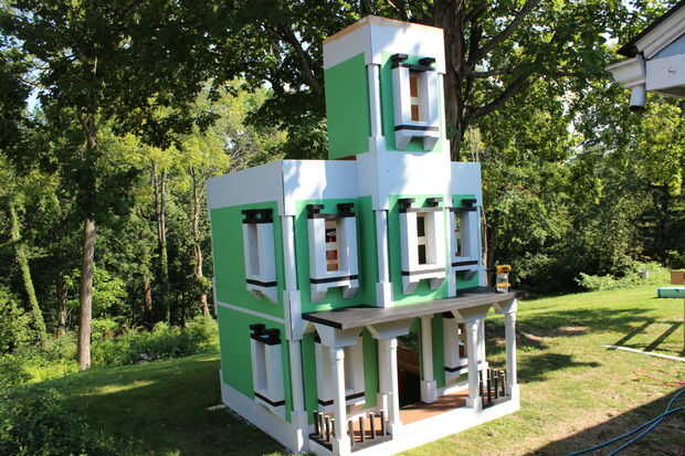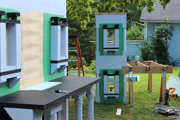 Definitivamente se necesitan dos personas para levantar la sección de salida en su lugar. Esta fue la única vez que tenía que tener una mano moviendo una pieza del rompecabezas.