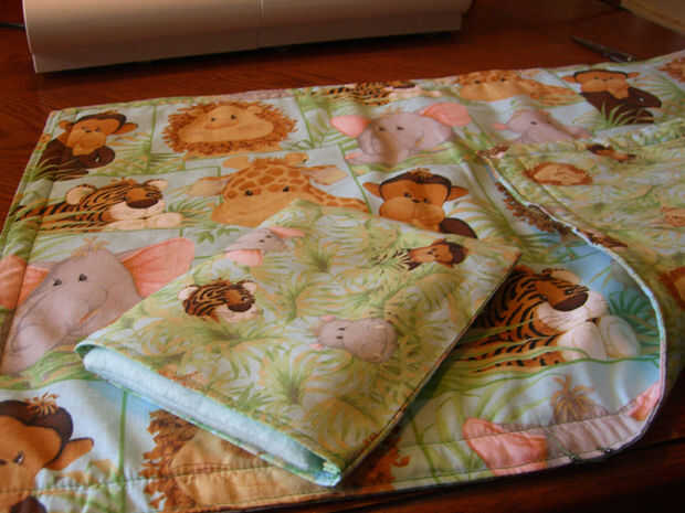 tonos de azul de bebé telas con mucha textura con un muestreador de dulce en el centro. Forro satinado, mullido, suave algodón reconfortante y tejidos camiseta con textura conforman este artículo pero hermoso edredón del bebé.No quieren hacer esto, l