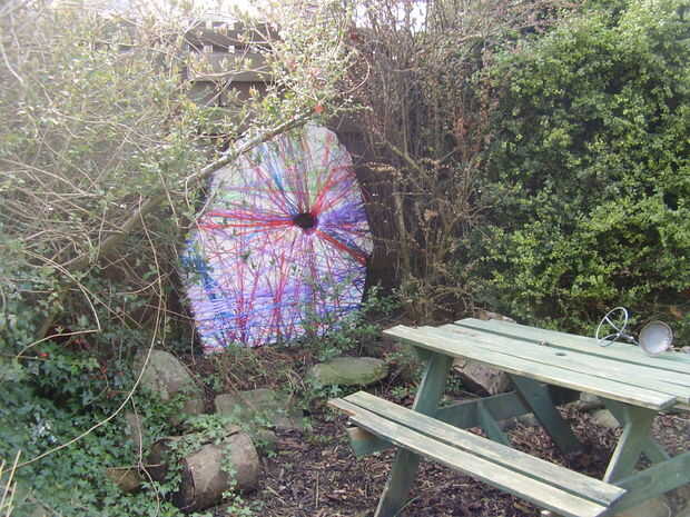 Desde entonces hemos hecho uno de estos usando cinta floristas (o podría usar la cinta de cassette) para hacer una versión resistente al agua, de aire libre.