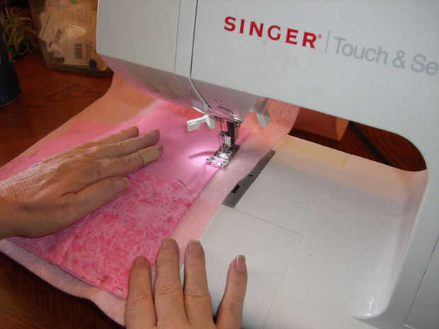 Cosa a la siguiente esquina y repita, cosiendo hasta la parte superior de los bolsillos.
