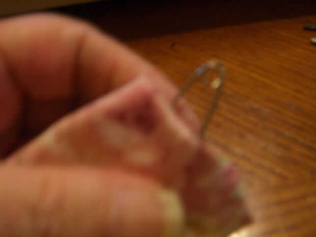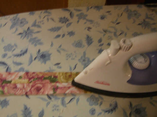Tomar 30 x 2 1/2 pulgadas piezas de arco con derecho coser una costura de 1/4 de pulgada, recorte o zigzag el borde de la puntada. En un extremo del arco Coloque un alfiler grande, gire en el interior del arco.