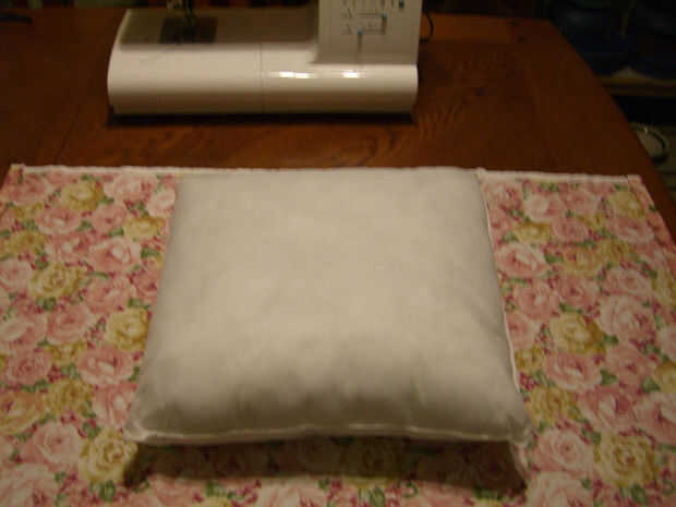 Doblar la tela sobre la almohada, superpuestas en el centro. Esto formará el bolsillo para insertar la forma de la almohada y hacer la cubierta desmontable se puede lavar.