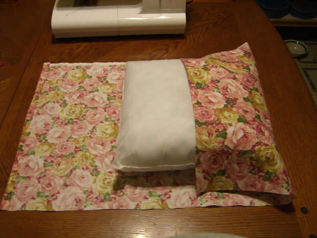 Quitar la forma de la almohada, gire al tejido adentro hacia fuera para que lados son uno frente al otro y los bordes del lado abierto en lugar del perno.