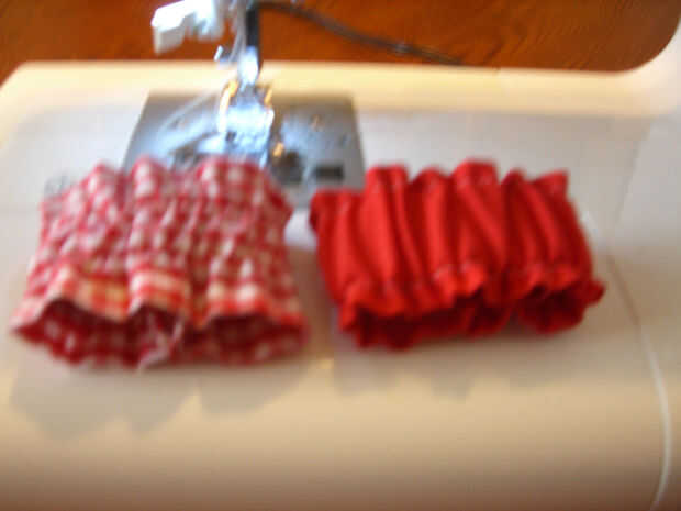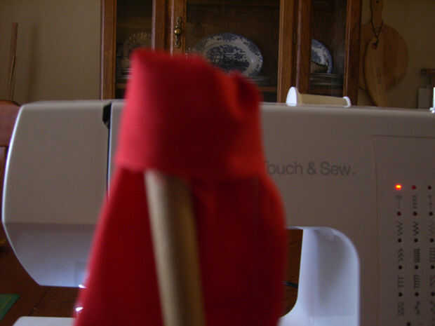 Doble uno de los extremos abiertos hacia abajo y coloque una varilla de pasador. Utilice la barra para girar la pieza hacia fuera. Puntada en 1/4 de pulgada en cada lado para crear a una guía para el elástico.