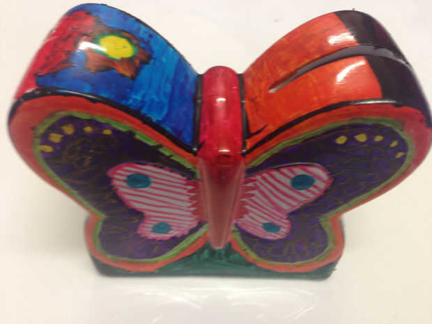 Hola, mi nombre es Hazel y yo soy un makergirl. Recientemente recibí un conjunto de bolígrafos de cerámica y quería darles una oportunidad a cabo. Me acaba de pasar que un bastante aburrido mirando mariposa caja de dinero que era blanca. Pensé que sería realmente impresionante si estaba decorado en un montón de colores de arco iris!