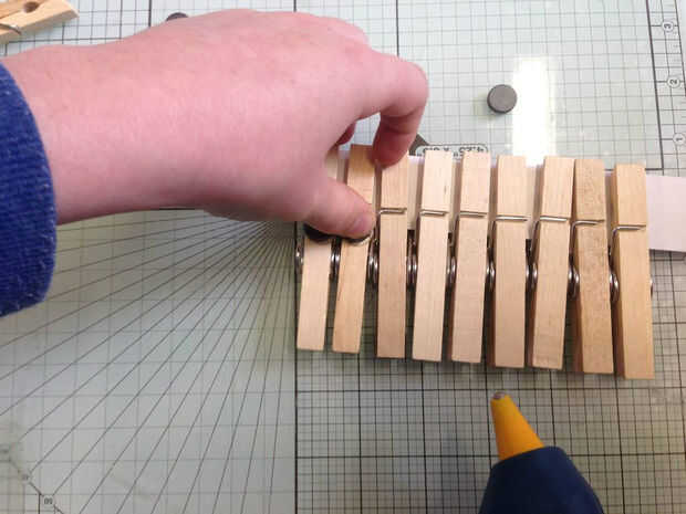 En primer lugar, usted necesita conectar sus imanes a las clavijas. Se utilizó una pistola de pegamento caliente para fijar sobre hasta la mitad.